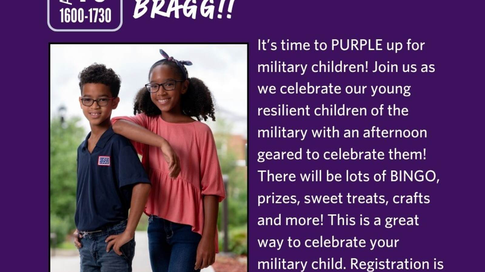 Join us for a fun-filled Purple Up Kids Bingo event in support of military children! This family-friendly event is designed to celebrate and honor the strength and resilience of our military kids. Kids of all ages can enjoy a lively game of bingo with exciting prizes, all while wearing purple to show support for military children around the world. It’s a great chance to connect with other families, have some fun, and create lasting memories. Don’t miss out on this exciting event—come for the bingo, stay for the fun, and let’s Purple Up together! EVENT FOR SCHOOL AGED CHILDREN. ONLY CHILDREN NEED A TICKET.